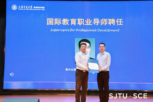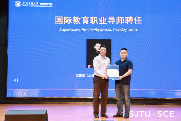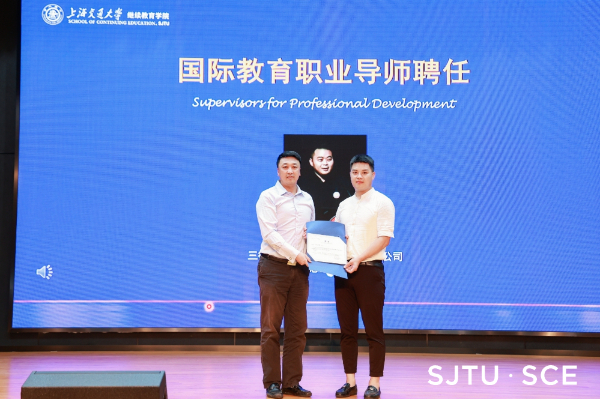 上海交通大学继续教育学院国际教育践行双导师制,校内导师与校外职业导师相结合,共同助力学生成长成才。迄今为止,国际教育已经聘任20余位职业导师,陆续开展专家讲座、企业参观实习、优秀企业家带教实践等职业拓展活动。今天,在新生和家长的见证下,为三位导师颁发了聘任证书,同时邀请苏晓科老师作为导师代表发言,苏老师作为交大优秀校友,激情澎湃地给台下的学弟学妹讲述了自己的留学经历,回国初衷,职业生涯以及创业经历。激励学弟学妹们勇担时代使命,做优秀的交大人。