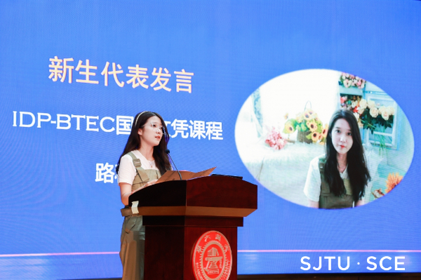 IDP-BTEC国际文凭课程路程惠以及IFP项目英联邦精英班厉以琳同学代表新生进行了发言。已经拿到多伦多大学和莫纳什大学offer的厉以琳同学因为疫情选择了交大留学桥作为自己蛰伏以及再次梦想腾飞的地方,相信优秀的他可以申请到更优秀的世界名校,在交大留学桥圆梦。