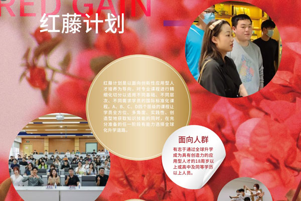 红藤计划是以面向创新性应用型人才培养为导向,对专业课程进行精细化切分以适用不同基础、不同层次、不同需求学员的国际标准化课程。A、B、C、D四个层级的课程让学员全方位、多角度、实践性、创造型地获取知识技能的同时,在充分准备的任一阶段有能力选择全球化升学道路。
