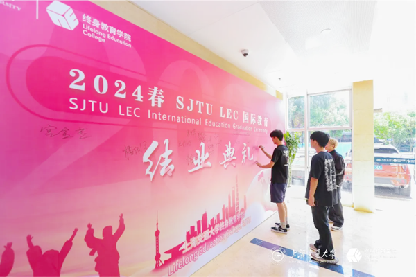 典礼开始前,结业打卡活动在校园内进行,同学们在各个含有交大元素的标志前拍照打卡,在美丽的校园里留下一道道青春靓丽的风景。结业典礼签名墙上写满了同学们的名字,每一笔,都是对校园时光最美好的回忆。