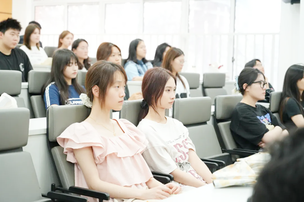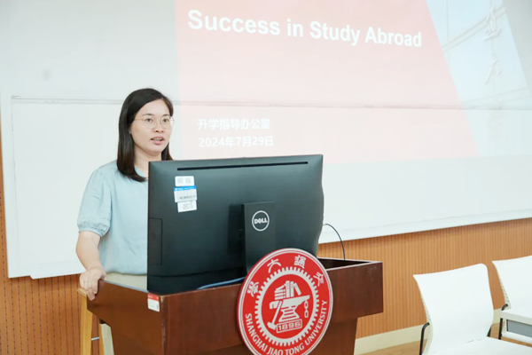 国际教育发展中心升学主管祝兰兰从合作院校、历年升学、升学准备三个方面为同学们介绍了国际教育往年升学情况以及新同学需要做的相关准备。国际教育教学主管孙晓娟为同学们详细讲解在校期间的成绩考核、学业预警、结业证书及学习平台等相关信息。